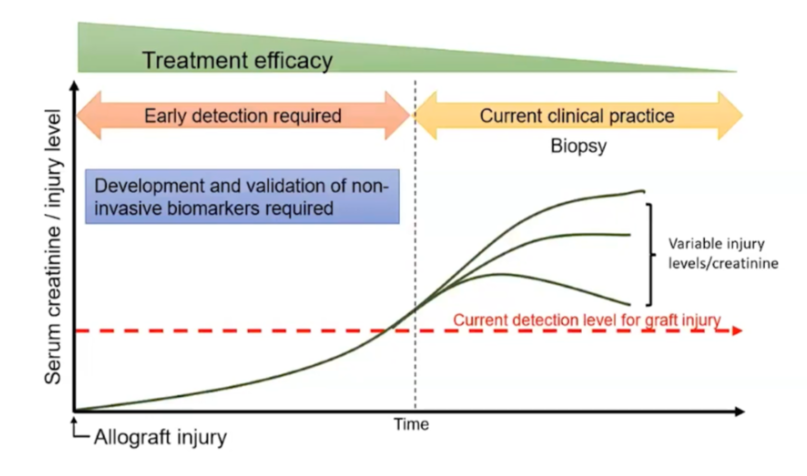 Herath and colleagues (5) argue that current methodologies for post-transplant monitoring detect allograft injury too late for available treatments to be efficacious and that non-invasive methods that can detect allograft dysfunction much earlier are required (Figure 2).