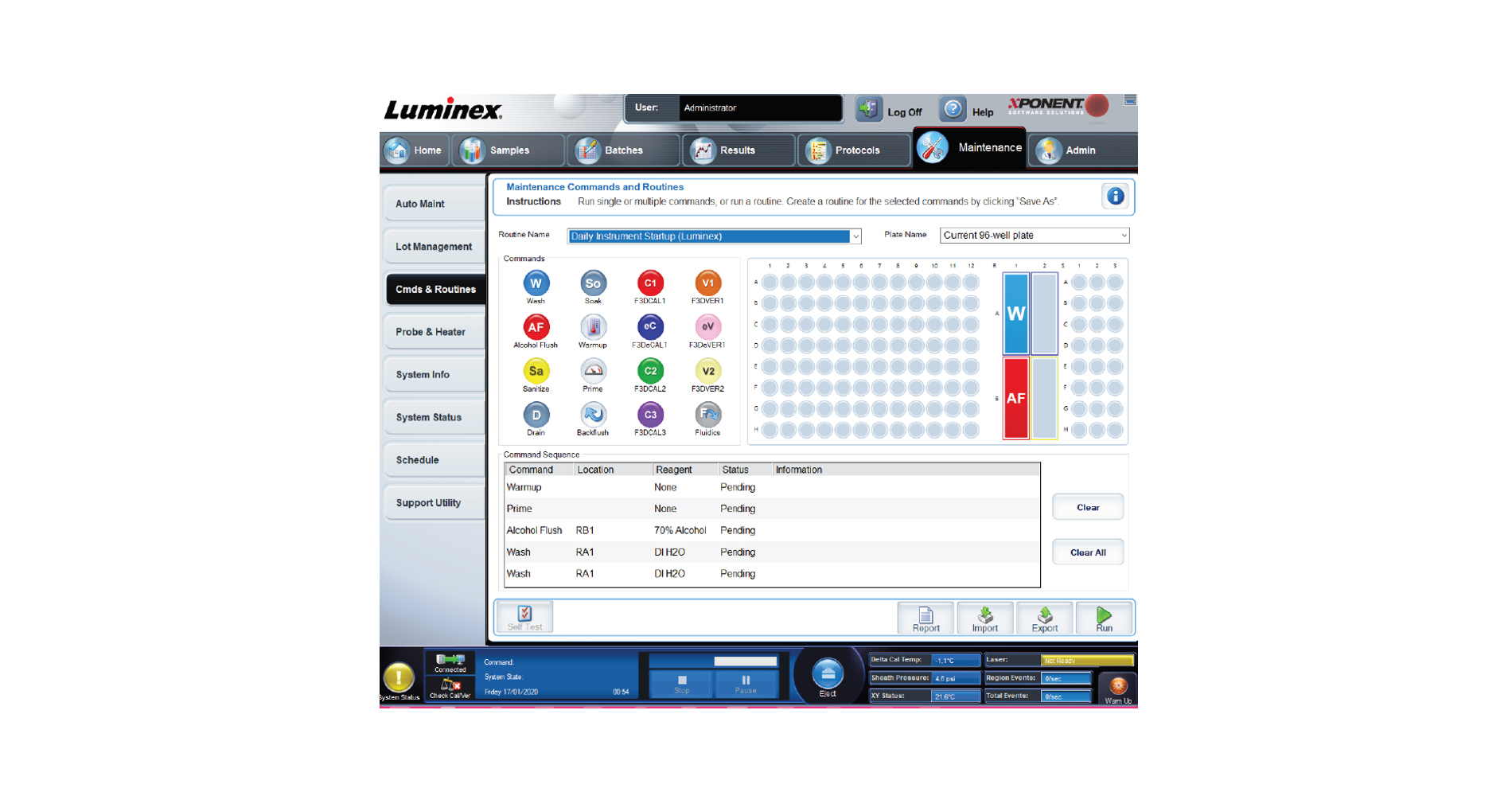 Compared to the Luminex® 200™, the FLEXMAP 3D® has simplified maintenance with automated probe adjustment and programmable maintenance protocols, enabling walk-away start-up and shut-down operations.